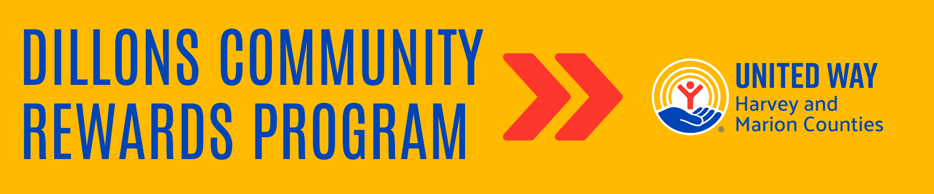 As a Dillons Plus Card holder, you can register your card with the Community Rewards program and then choose United Way of Harvey and Marion Counties as your reward recipient. Every time you purchase groceries with your Plus Card, Dillons will reward United Way of Harvey and Marion Counties by donating a portion of your purchase.